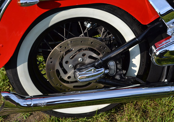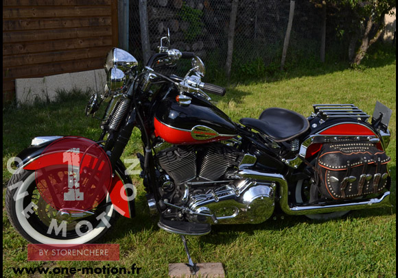Stage 1avec Echappement complet Vances & Hines Softail Duals avec 2 tubes d’échappement sans raccords qui donne se look véritablement nostalgique. Embouts d’échappements queue de carpe.