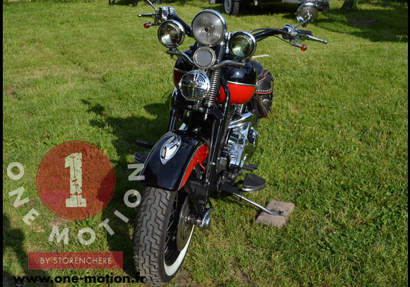 Moto en superbe état . L’ancien propriétaire a customisé sa moto pour lui donner un look des années 50. Un style Old School avec le mélange noire, rouge avec pneus flancs blancs.